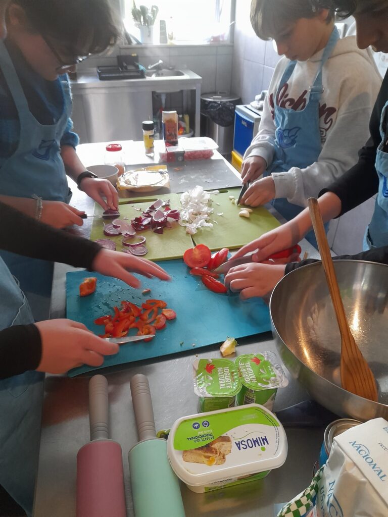 O Clube de Culinária complementou as aulas com a ida a um supermercado da freguesia, em que foram transmitidas dicas sobre: como se deve circular num supermercado, que alimentos comprar primeiro, aprendizagem simples sobre leitura de rótulos alimentares e dicas gerais de poupança. No final foi entregue uma lista de ingredientes aos alunos para comprarem legumes e prepararem uma sopa na cozinha da escola. Entre as várias receitas confeccionadas, destacamos a Bagel com ovo à la croque e um batido tropical, Crumble de maçã, Pizzas na frigideira com base de batata doce e Sushi.