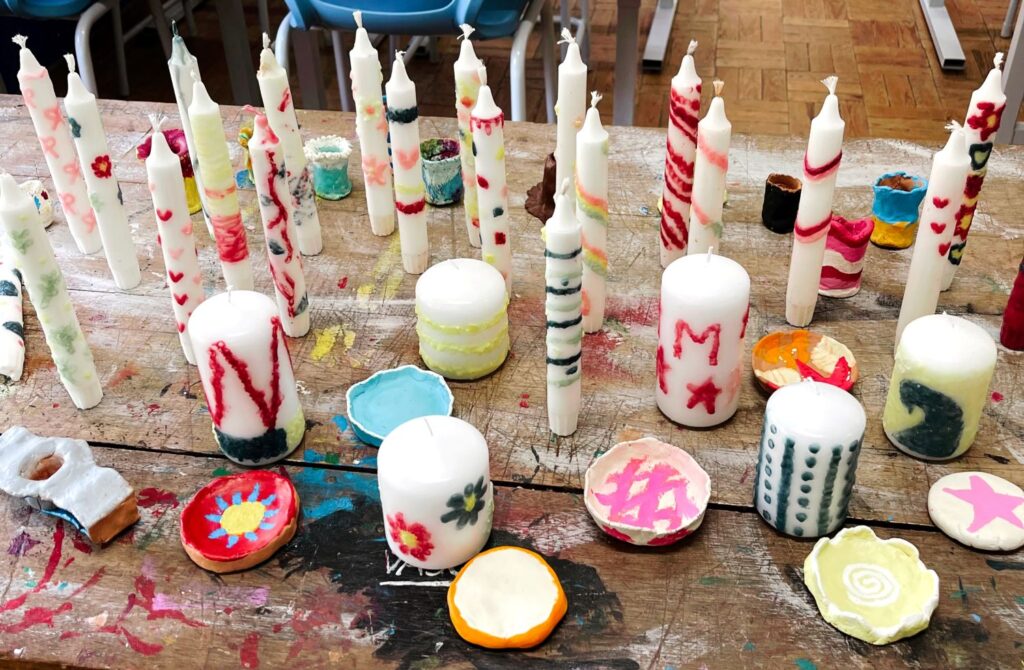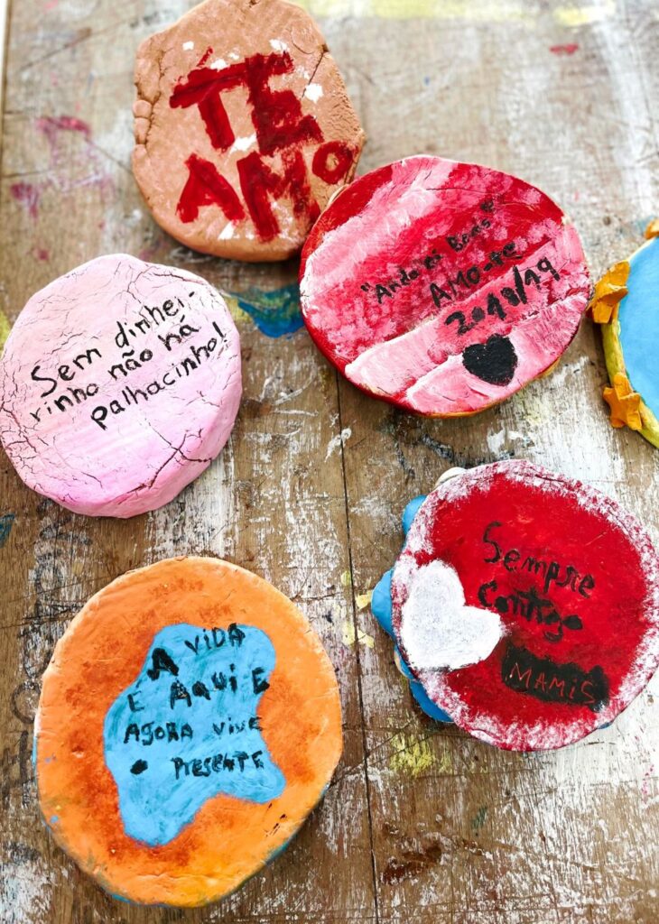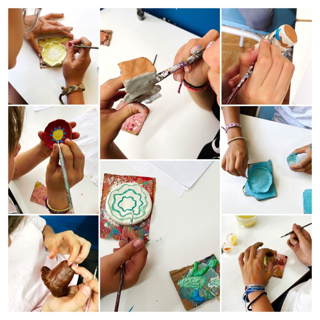 Na vertente de artesanato, no início do período e aproveitando a celebração do dia da mãe, as crianças finalizaram um prato em barro moldado com conchas da praia. Fazendo com que a concha fizesse parte do próprio prato, pintaram e para finalizar adicionaram uma mensagem especial para a pessoa importante a que quem iriam oferecer. Também desenvolveram em barro um pousa velas, utilizando a sua vela como molde para o resultado final do barro, pintaram-no com tintas acrílicas. Coloriram de forma criativa uma vela branca utilizando cera derretida de várias cores. A criação destas peças resultou em algo proveitoso e bonito no final.