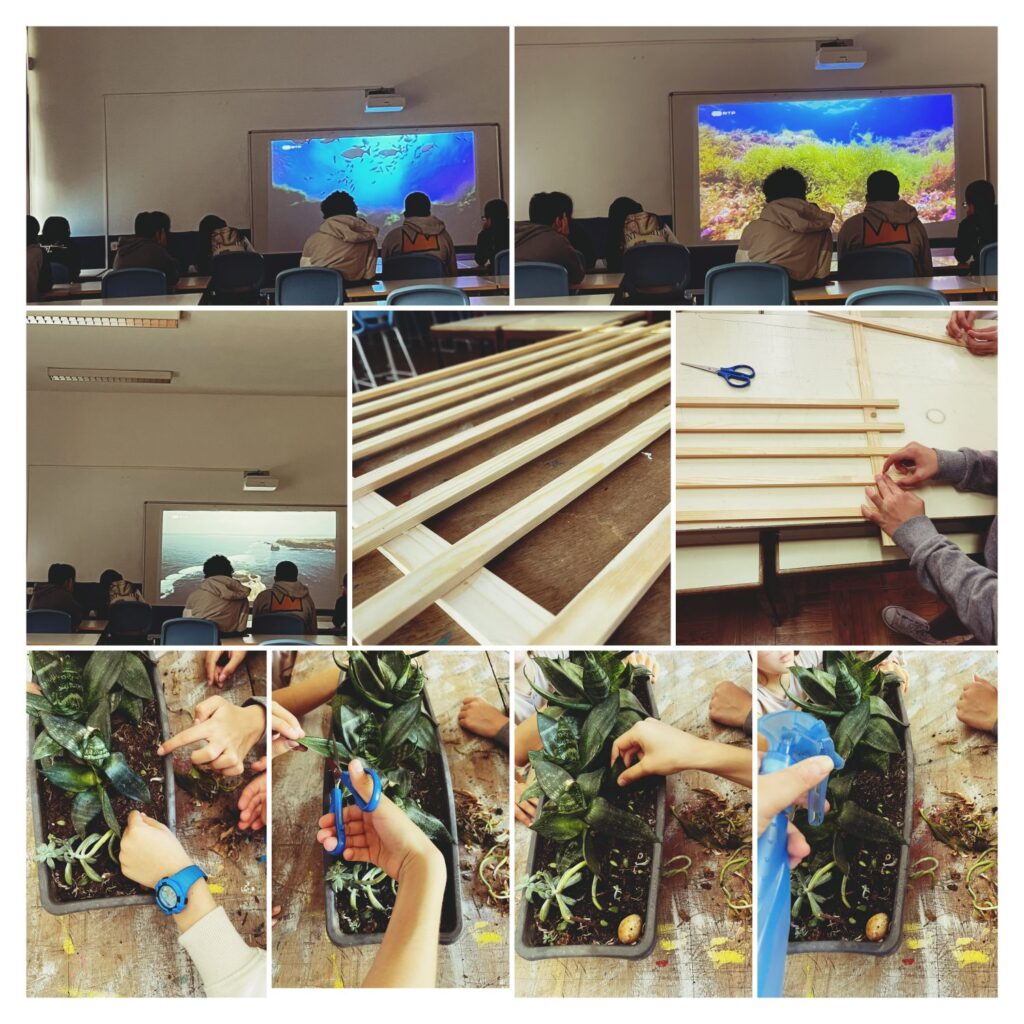 Na Ludoteca-Horta devido às condições climatéricas adversas, tornou-se impossível plantar o que estava planeado e vimo-nos obrigados a trazer um pouco da horta para a sala de aula. Desenvolvemos atividades como a realização de jardim em sala de aula, em que os alunos utilizaram material reciclado e desenvolveram o seu próprio vaso; foram criados pequenos folhas informativas sobre algumas tarefas que se realizam na horta; desenvolveram-se estruturas com o objetivo de serem colocadas nos canteiros na altura da primavera para plantações que precisam de suporte para crescerem; visionaram o documentário “O mar do nosso futuro”. Nos dias em que as condições climatéricas assim o possibilitaram, os alunos limparam a zona de piquenique da escola, parte do espaço da horta e ainda apanharam os legumes que plantaram no último período.