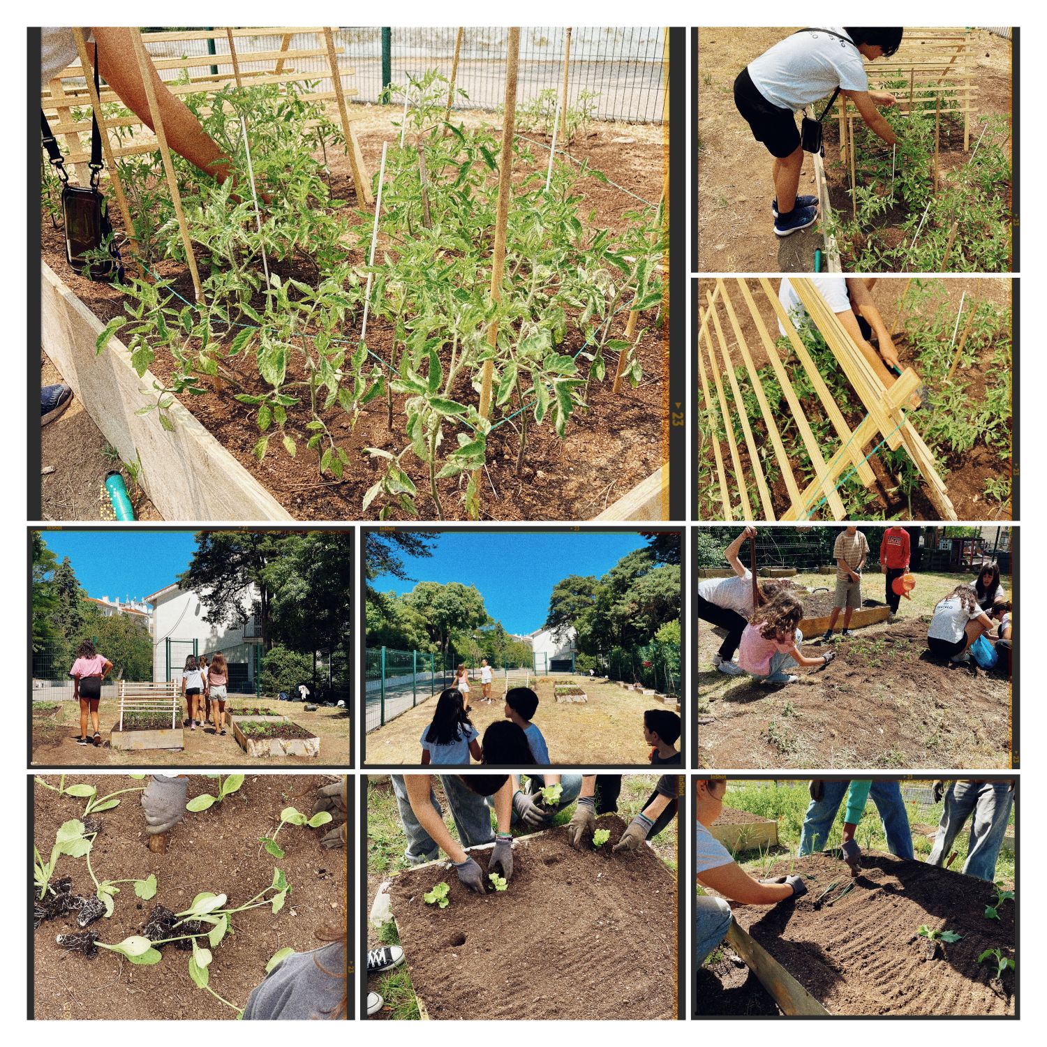 Na vertente de Horta, os alunos começaram o último período por preparar os canteiros para os novos cultivos, tendo posteriormente plantado alfaces, alho francês, pimentos, beringela, beterraba, rúcula, pepinos, tomates cereja, chuchu. Mais uma vez assistimos a fenómenos meteorológicos, com as temperaturas máximas a chegaram os números nunca antes registadas para determinados dias de Maio e Junho. Assim houve a necessidade de uma grande parte de cada aula ser orientada à rega de todos os canteiros, também à limpeza e adicionar material orgânica para nutrição extra do solo. Planearam e construíram estruturas em madeira para os canteiros com os tomateiros, plantas que possuem a característica de crescimento onde é importante dar um suporte extra. Por fim, as crianças levaram para casa o que foi possível apanhar no curto espaço de tempo em que estiveram plantadas.